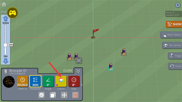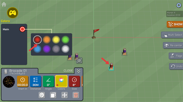 3、选中已放置的烟花,点击【Colors】选项,打开颜色面板自定义烟花的色彩效果。
