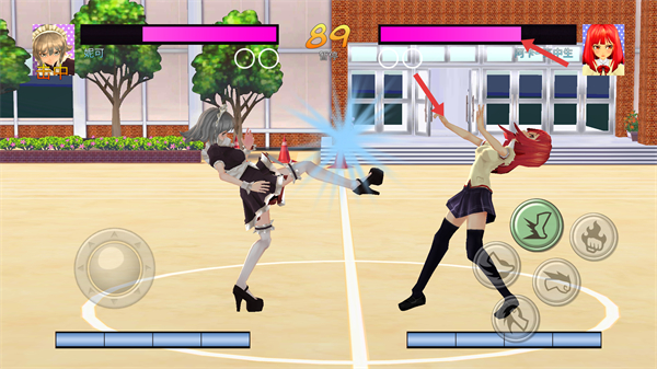 高中女生大决战是一款美少女对抗类手游。需要灵活运用移动、攻击与格挡等多种操作,通过精准的时机判断来施展华丽连招。游戏设置了两回合激烈比拼,只有连赢两场才能获得最终胜利,充分考验反应速度与战术思维。