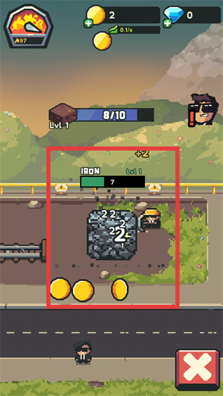 4、升级后点击矿石,可打出更高伤害,快速挖矿获取金币,循环升级。