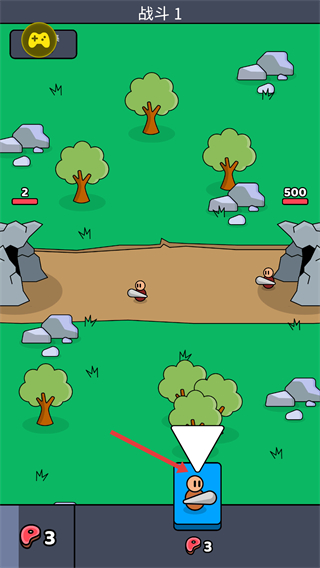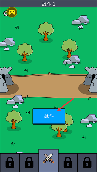 1、进入【战斗-1】场景,点击蓝色的【战斗】按钮,开启对局的核心战斗环节。