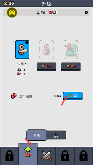 4、进入升级界面,花费【12】金币升级【生产速度】,提升资源获取效率,强化战斗续航。