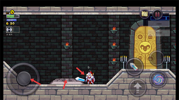 4、传送完成后,操控角色移动到金色大门前,准备开启下一层地牢的挑战。