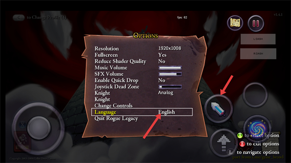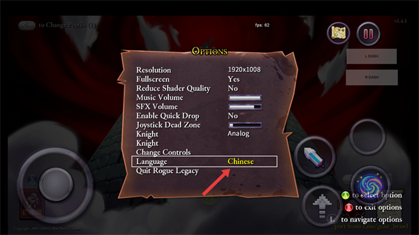 3、将语言从【English】切换为【Chinese】,完成游戏界面的中文汉化设置。